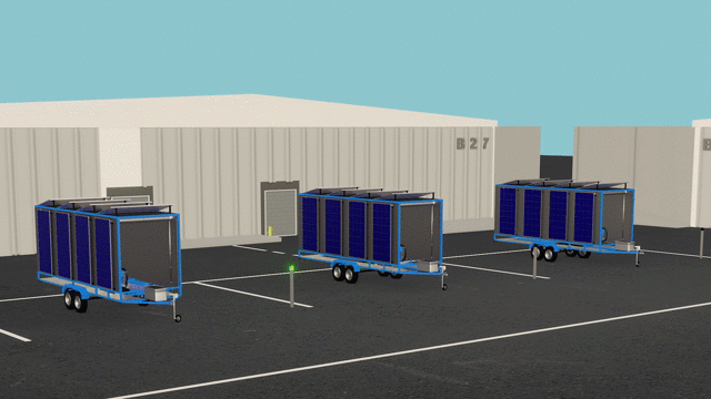 - Para ello, el remolque solar se desplaza a una posición de limpieza que permite limpiar fácilmente los paneles solares.